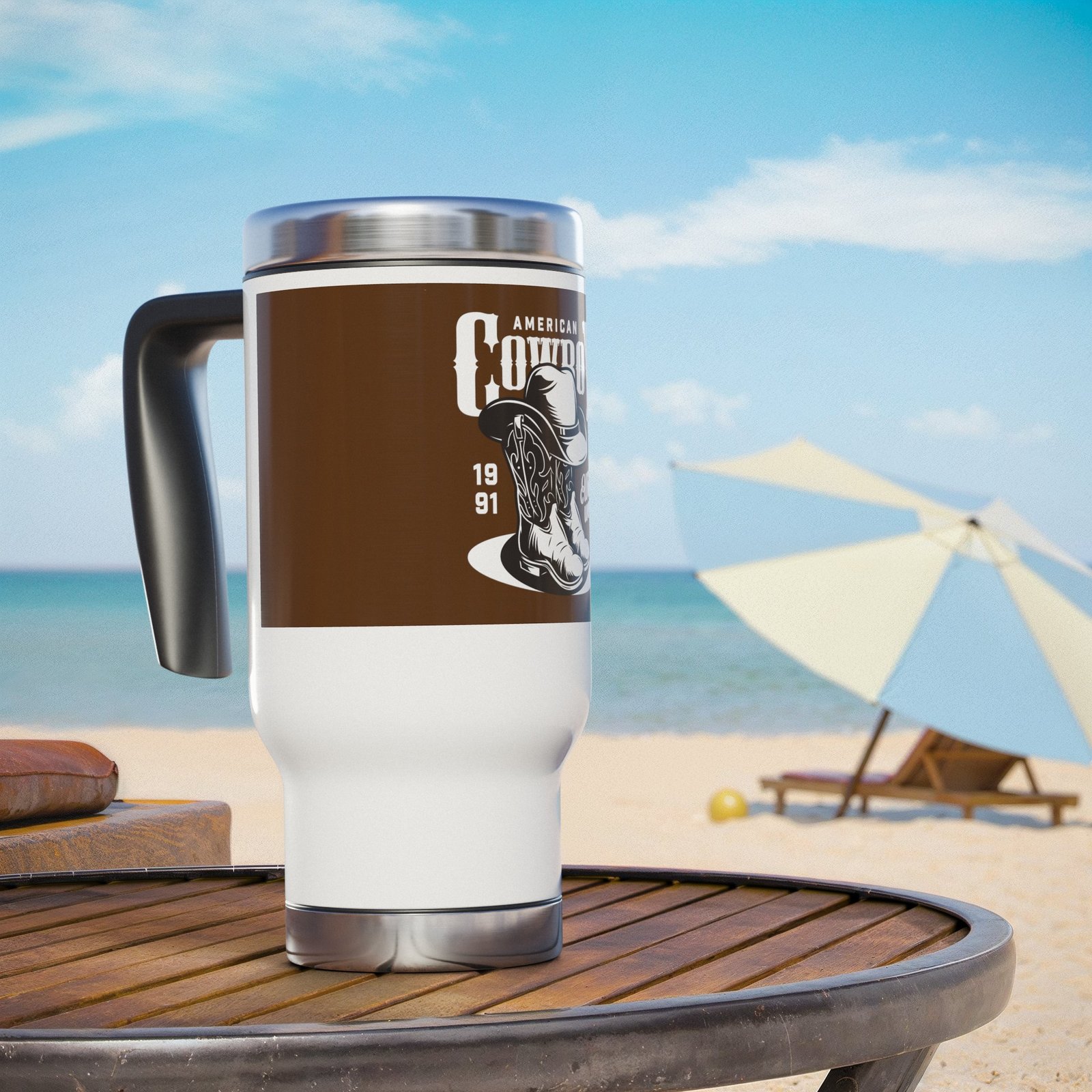 Take to the great outdoors with your favorite beverage in hand, all thanks to these custom stainless steel travel mugs. Each mug holds 14 oz. of your favorite beverage and is made with adventure-friendly stainless steel. With a glossy white enamel finish, a spill-resistant and snap-on cap, as well as a lined-in insulating plastic, this mug combines character with an explorer’s favorite; practicality.