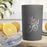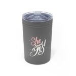 Designed to keep your beverage hot up to 5 hours and cold for 15 hours, the Sherpa is an 11oz insulated vacuum tumbler that also doubles as a 12oz can insulator. Its double-wall construction features an 18/8 grade Stainless Steel inner wall, and a Stainless Steel outer wall. Features clear, press-on lid with slide closure.